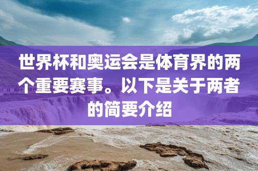 世界杯和奥运会是体育界的两个重要赛事。以下是关于两者的简要介绍